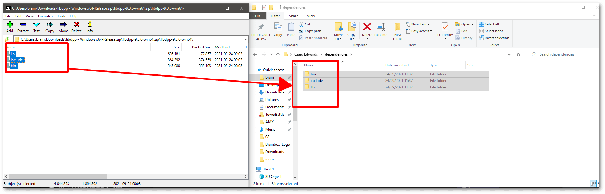 5. Open the zip file you downloaded which contains the D++ DLLs, include files, and lib file. Drag and drop this to your local machine and make note of where you placed it. This location will be important in later steps.
