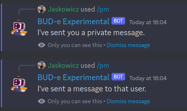 /* We do the same here, so the message is different if it's to the command author or if it's to a specified user. */